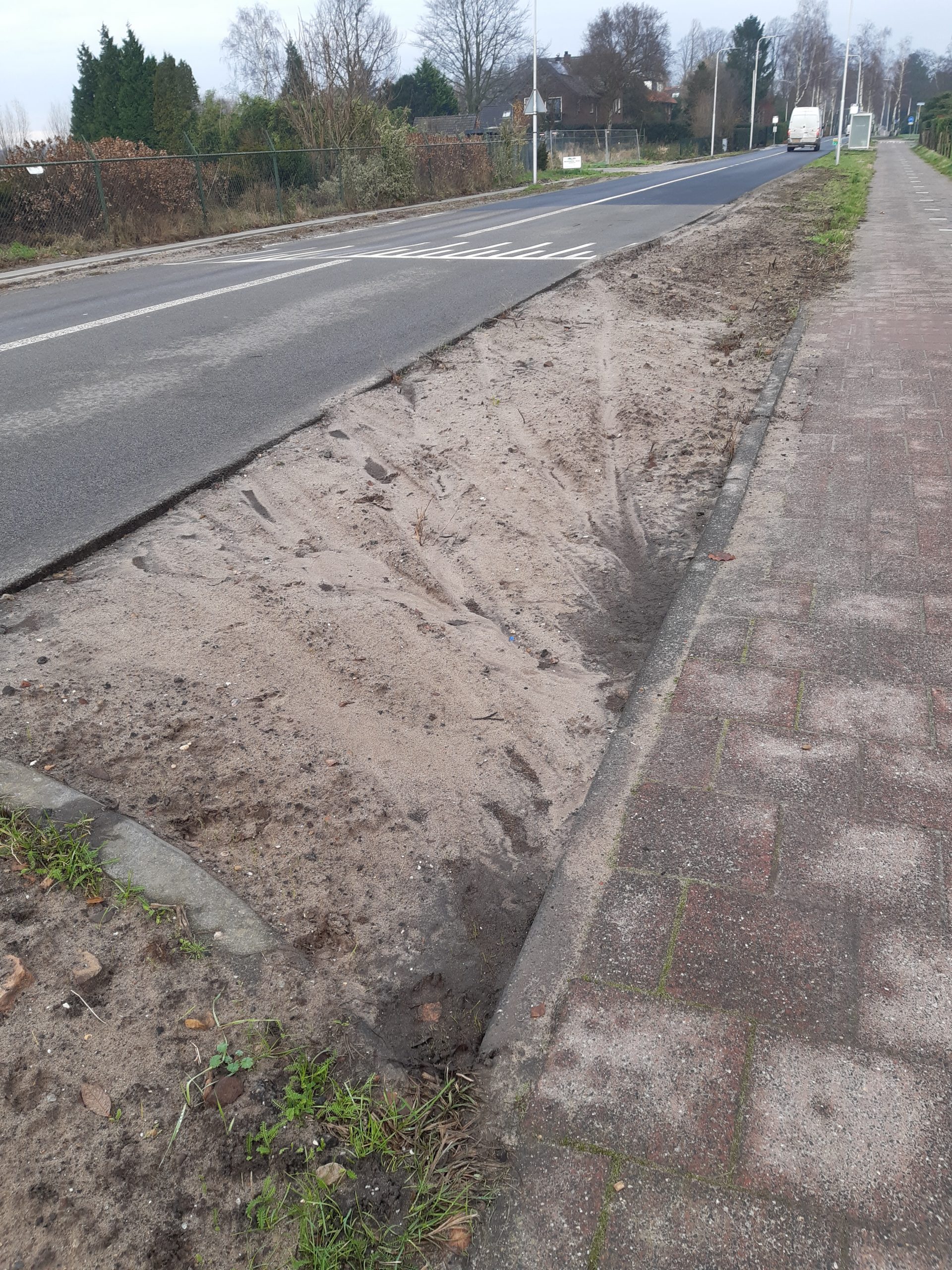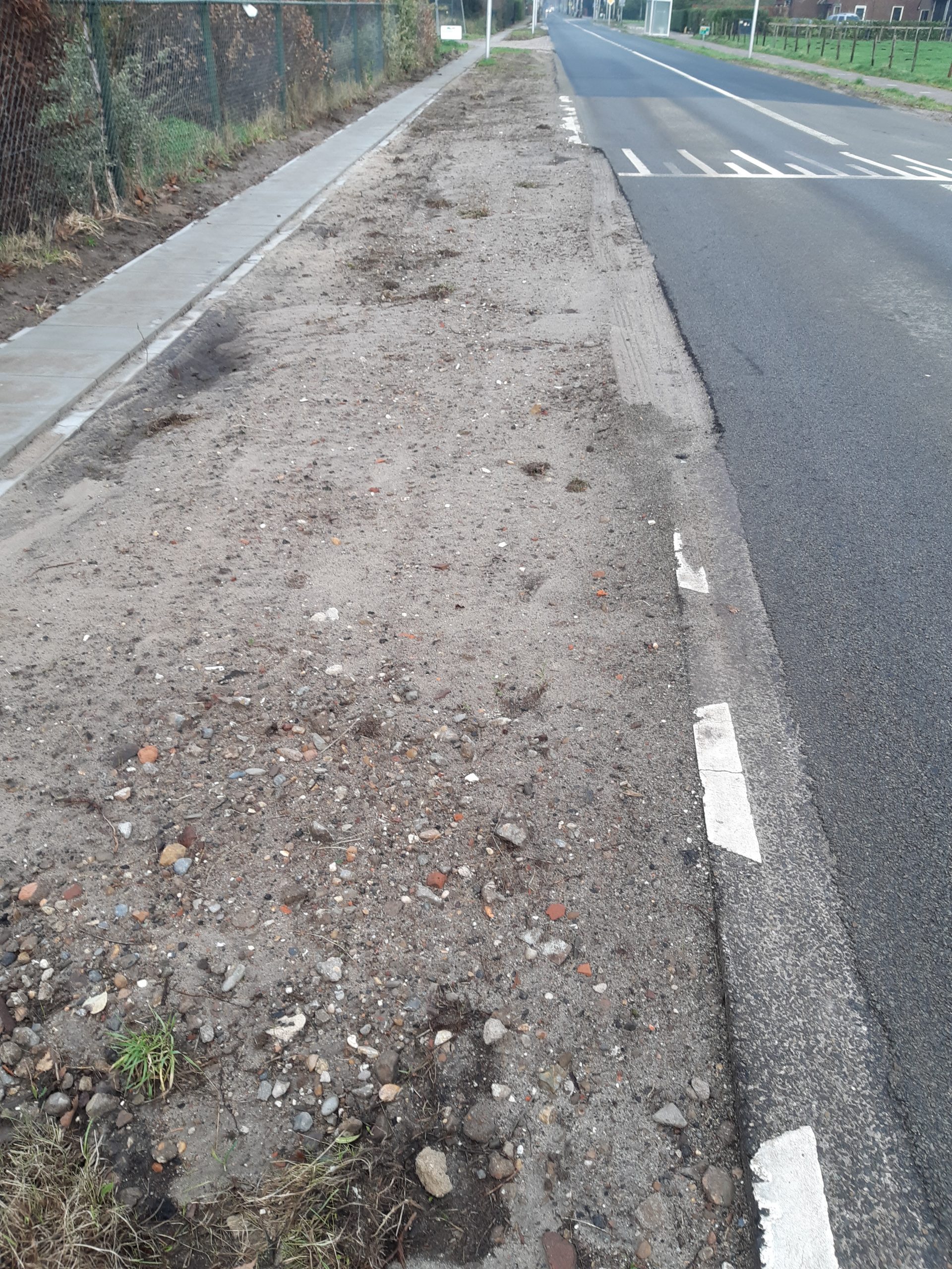 De overgangen voor bromfietsers om te wisellen tussen rijbaan en fietspad (richting Maartensdijk) bestaat nu uit zand aan allebei de zijden van de rijbaan. Het bord “bromfietsers op de rijbaan” ligt plat. Moeten bromfietsers nog maandenlang toch over het fietspad binnen de bebouwde kom rijden of buiten de bebouwde kom op de  rijbaan blijven? Dit creëert allebei een gevaarlijke situatie en dient snel opgelost te worden.