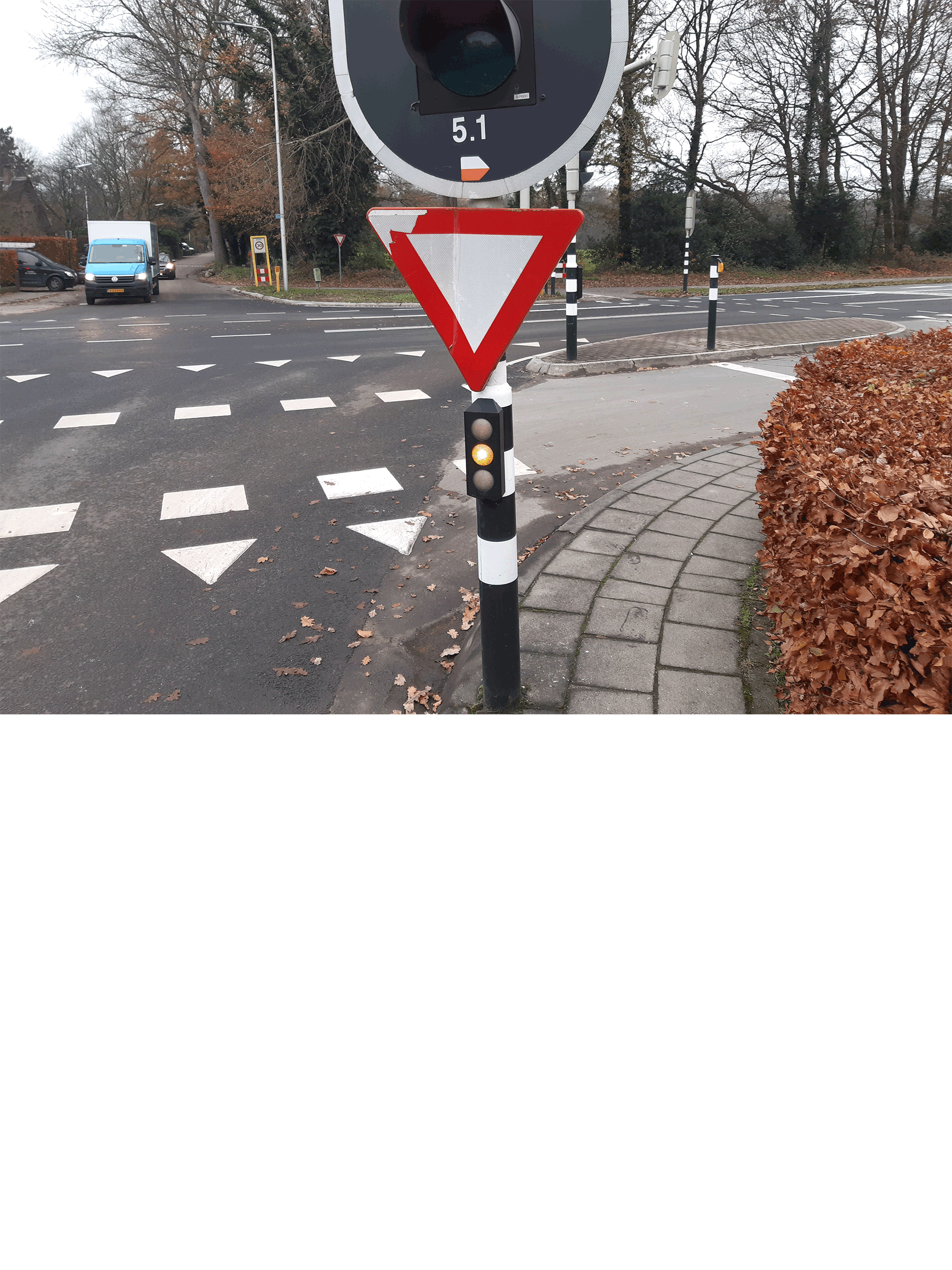 1. Het voorrangsbord bij kruispunt met Vuursche Dreef.