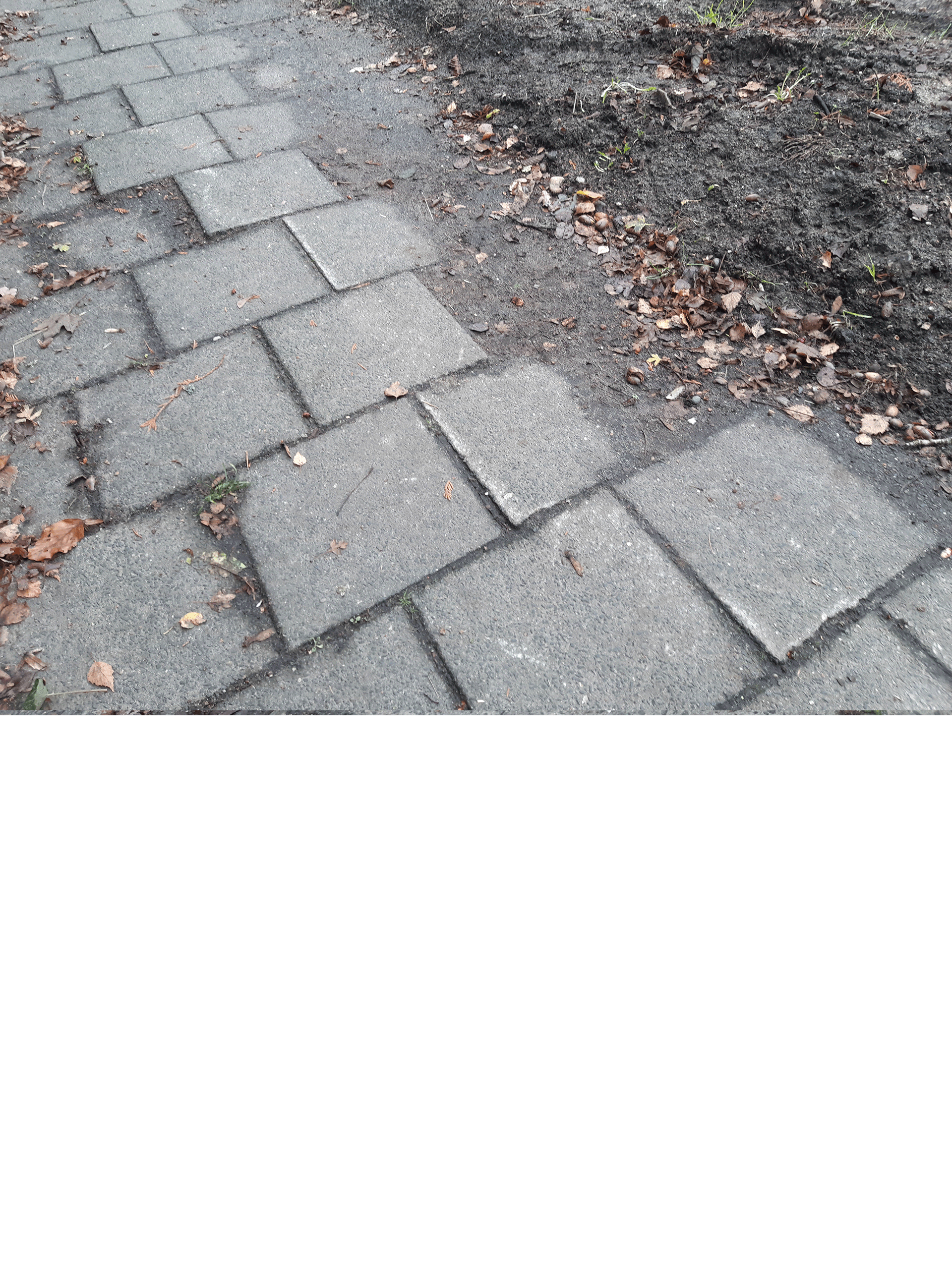 Hoewel er hier en daar tegels opnieuw gelegd zijn, blijven er vele onregelmatige plekken over, onder andere niet goed aansluitende tegels bij putten. Tevens staan er bij regen plassen bij de oprit van het Chinese restaurant.