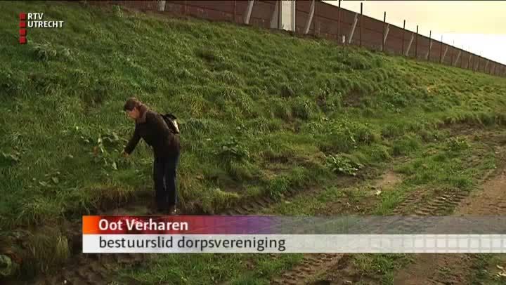 Verharen: “Ik zit al vijf jaar in een klankbordgroep als participantburger voor de A27 dus we hebben altijd met beide partijen overlegd. Maar we hebben nooit gehoord dat er iets mis was met de grond. Tot ik op het station van Hollandsche Rading stond, naar het talud keek en dacht: oh god, daar komt die Japanse Duizendknoop op. Nu zitten wij dus opgescheept met een talud waar overal die plant bovenkomt. En ze zouden deze maand de nieuwe planten plaatsen, maar die maken geen schijn van kans. Want die Duizendknoop gaat dat gewoon overwoekeren.”