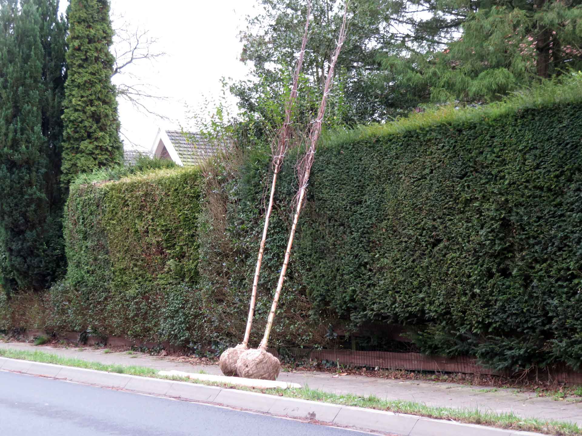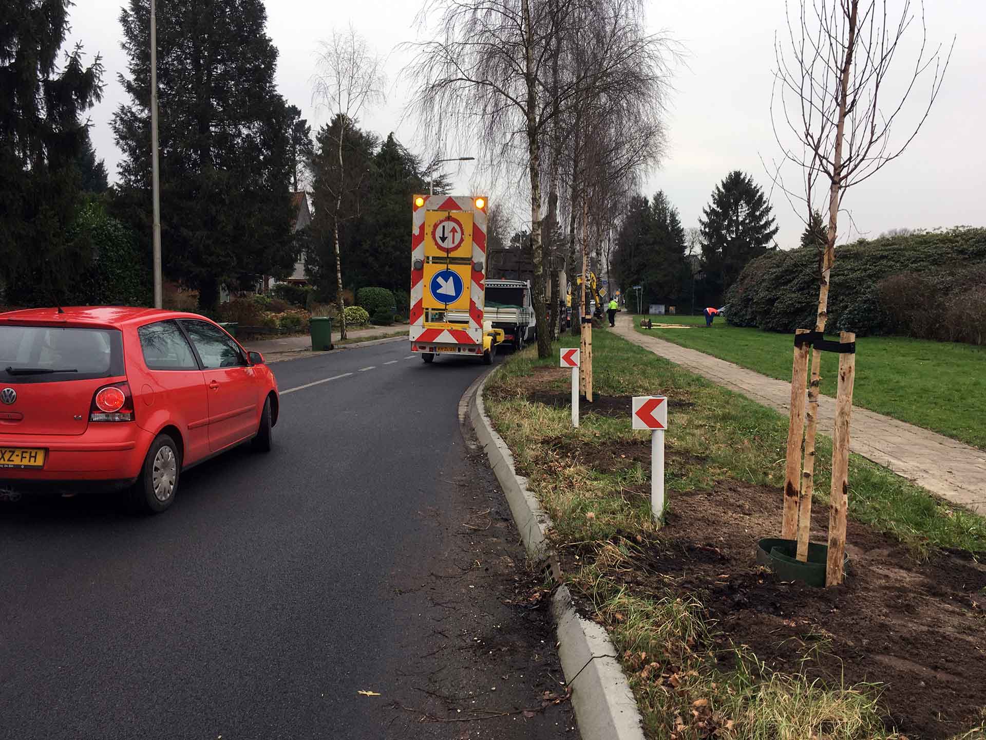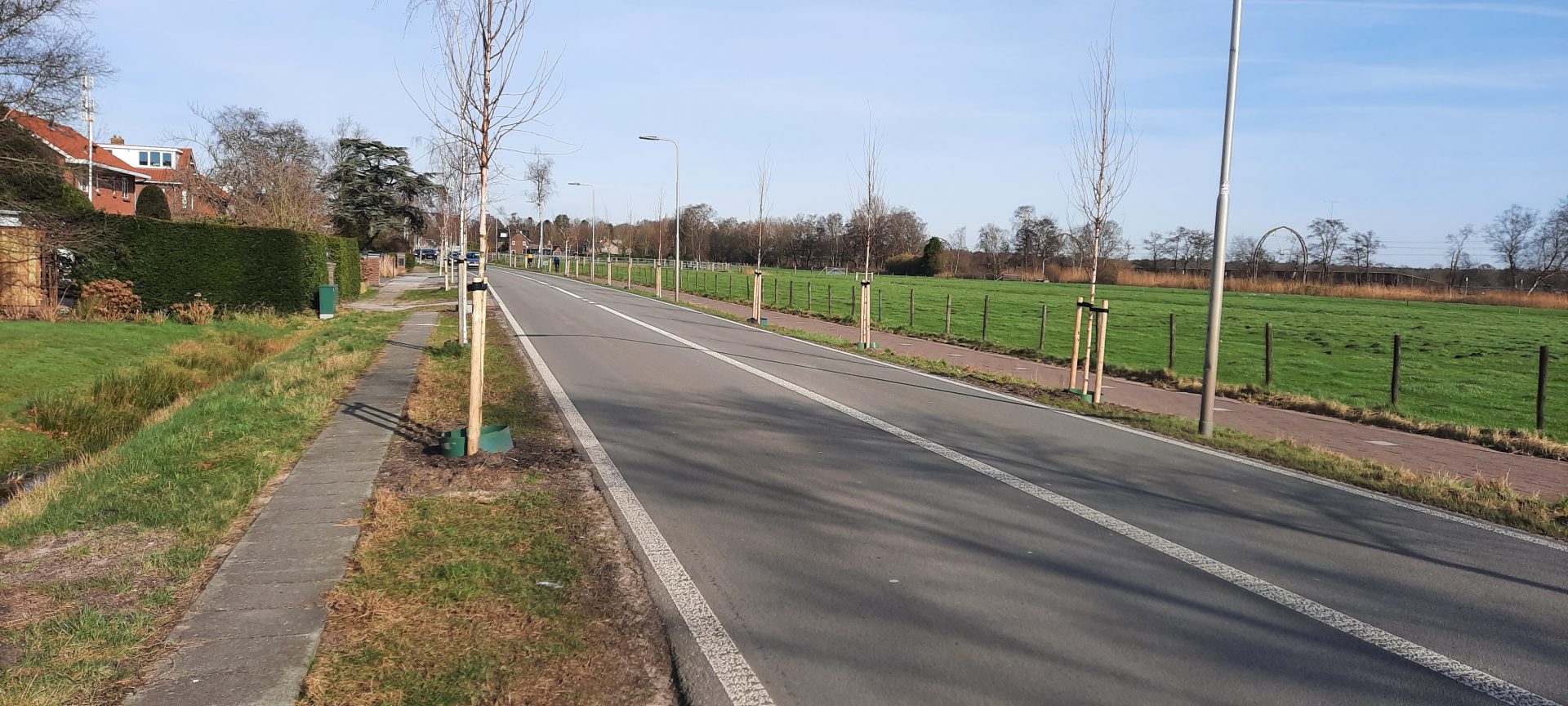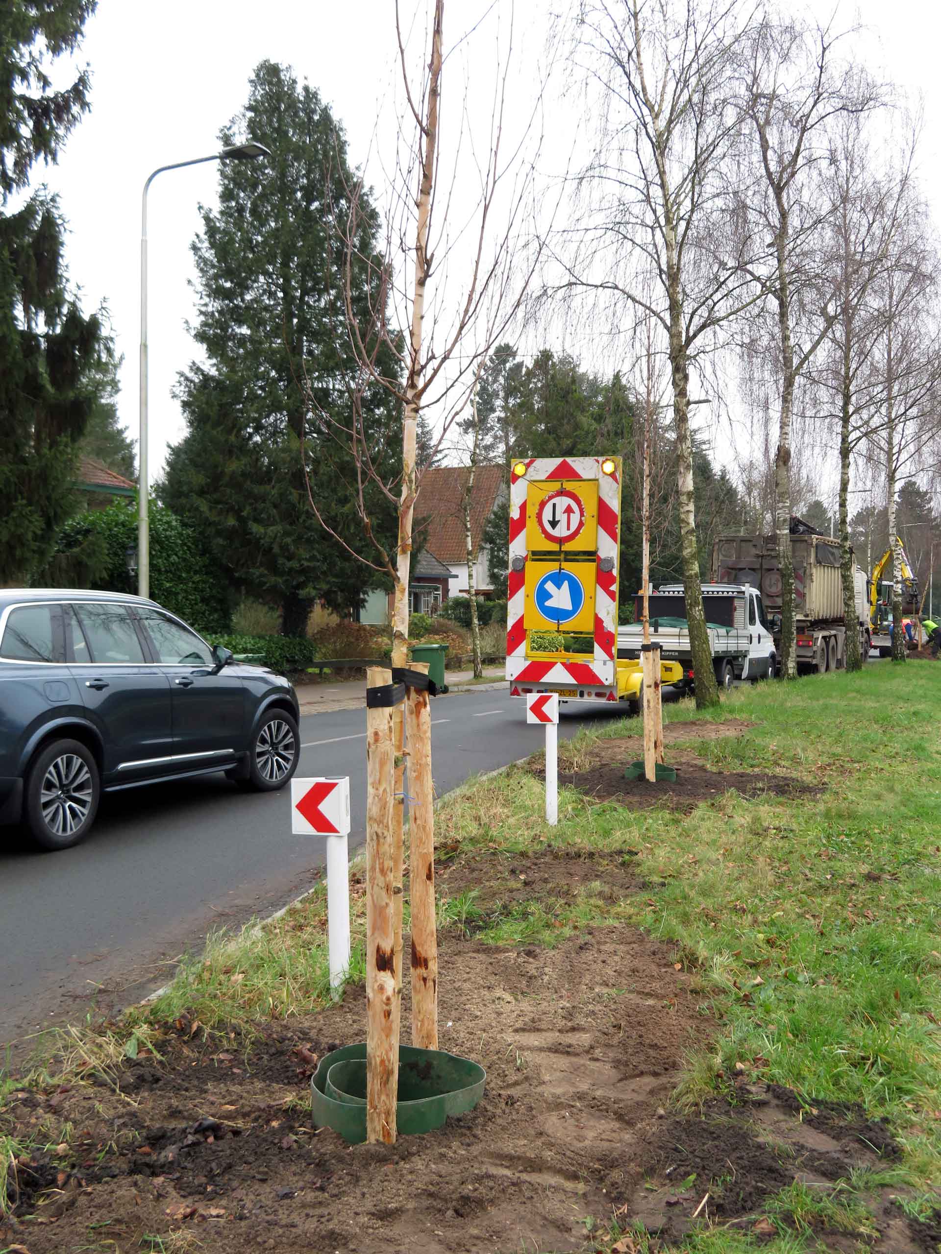 Volgens Fred Houtman moet alleen het stuk bij het bouwterrein op het voormalig tuincentrum van Hendriksen later nog worden beplant. Recent zijn daar bestaande berken door grote trucks aangereden. Het heeft dan ook geen zin om daar nieuwe bomen te planten voordat de bouw voltooid is. Volgens Fred is daarbij het idee geopperd om ook op de kavel zelf nog een aantal berken aan te planten om zo vanaf de weg een mooie aansluiting van de nieuwe woningen op de bebouwde kom te realiseren.