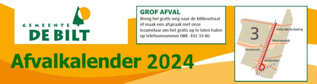 De Gemeente De Bilt heeft de nieuwe afvalkalender voor 2024 gepubliceerd. Op de afvalkalender kunt u zien welke afvalsoort u kunt aanbieden en wanneer het afval wordt opgehaald.