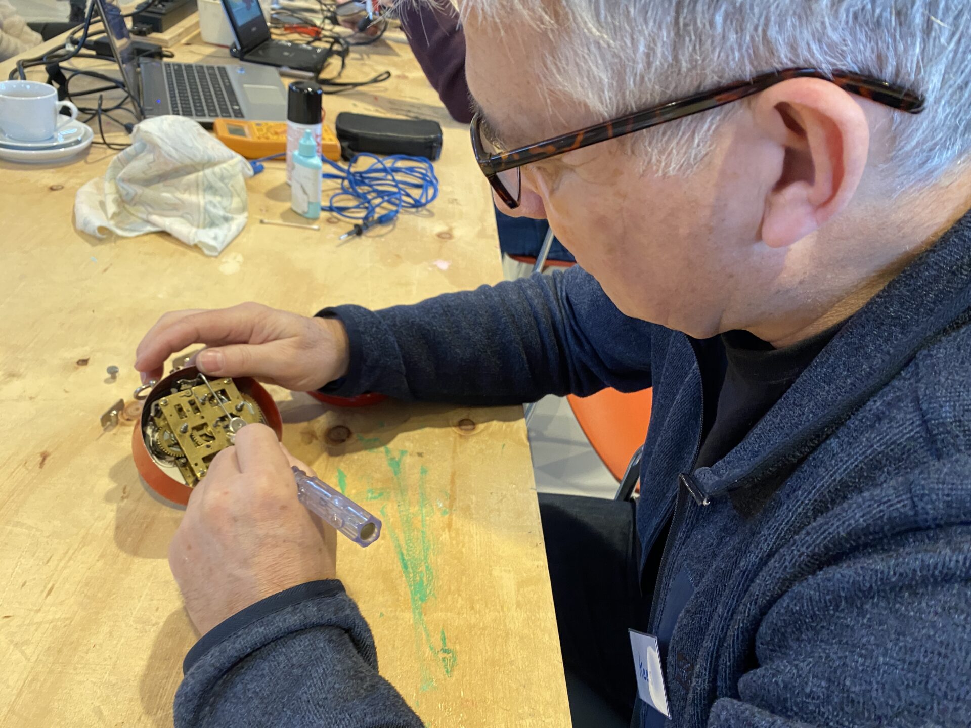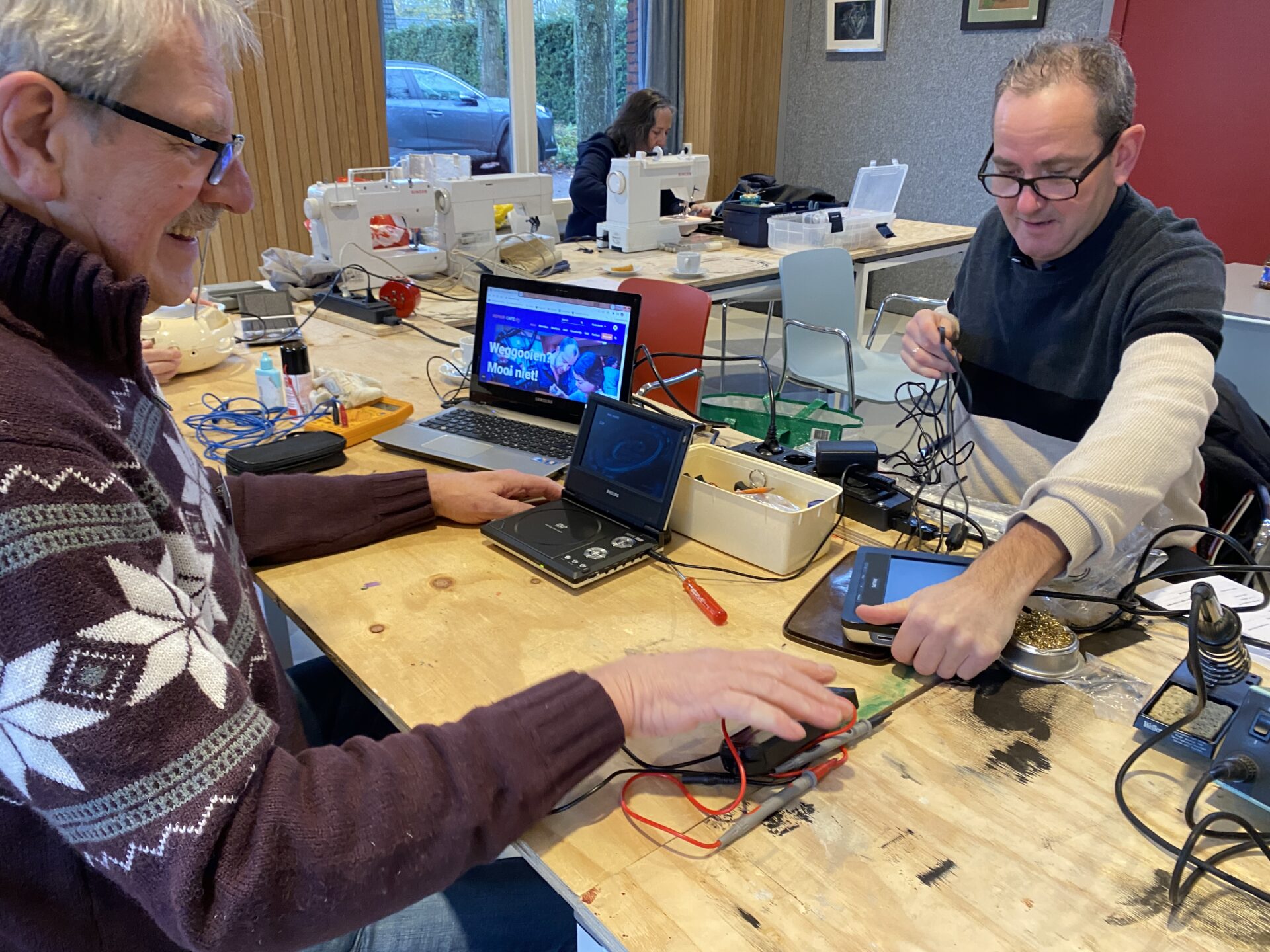 Op zaterdagmorgen 23 november 2024 was het weer gezellig druk in het dorpshuis. (Dat kwam natuurlijk ook omdat de volgende dag Sinterklaas in het dorpshuis verwacht werd.) Er werden in totaal 30 items ter reparatie aangeboden, voornamelijk elektrische apparaten en kleding. Tijdens het wachten en voor belangstellenden, was er koffie met cake. De successcore van de reparaties was deze keer 69%. Bewoners gingen weer naar huis met gerepareerde kleding, een werkende printer, naaimachine, CD speler, wekker, koffiezetapparaat en fietsverlichting of, als dat niet lukte, met een goed advies. Het volgende Repair Café is op 25 januari 2025.