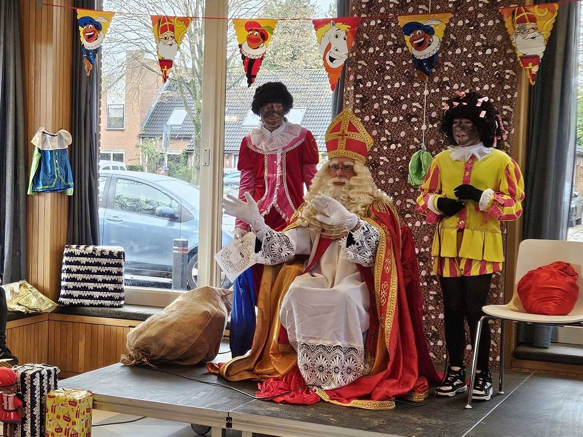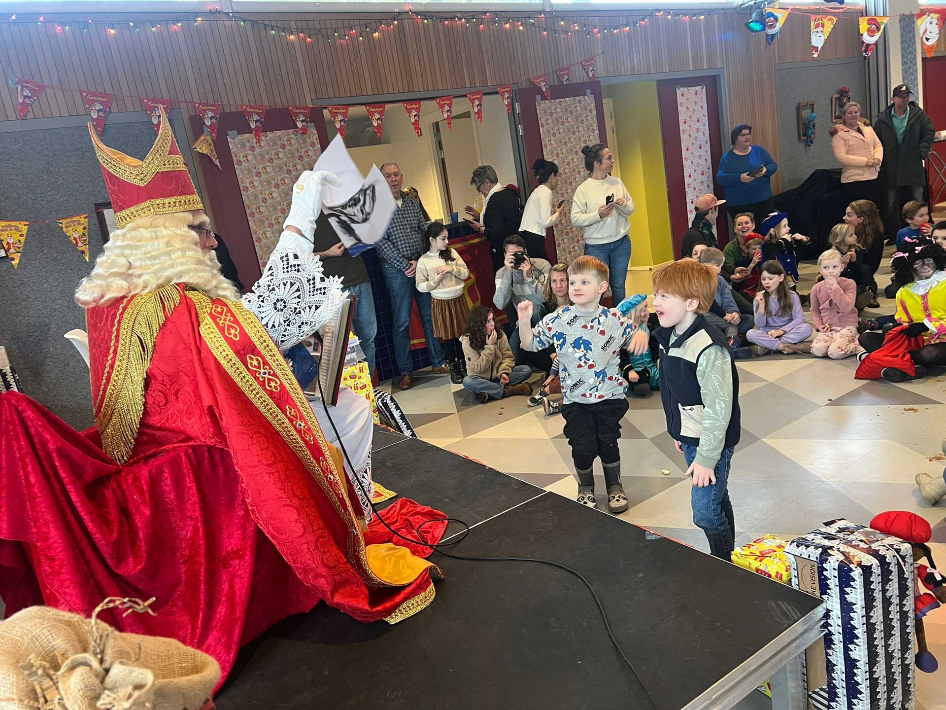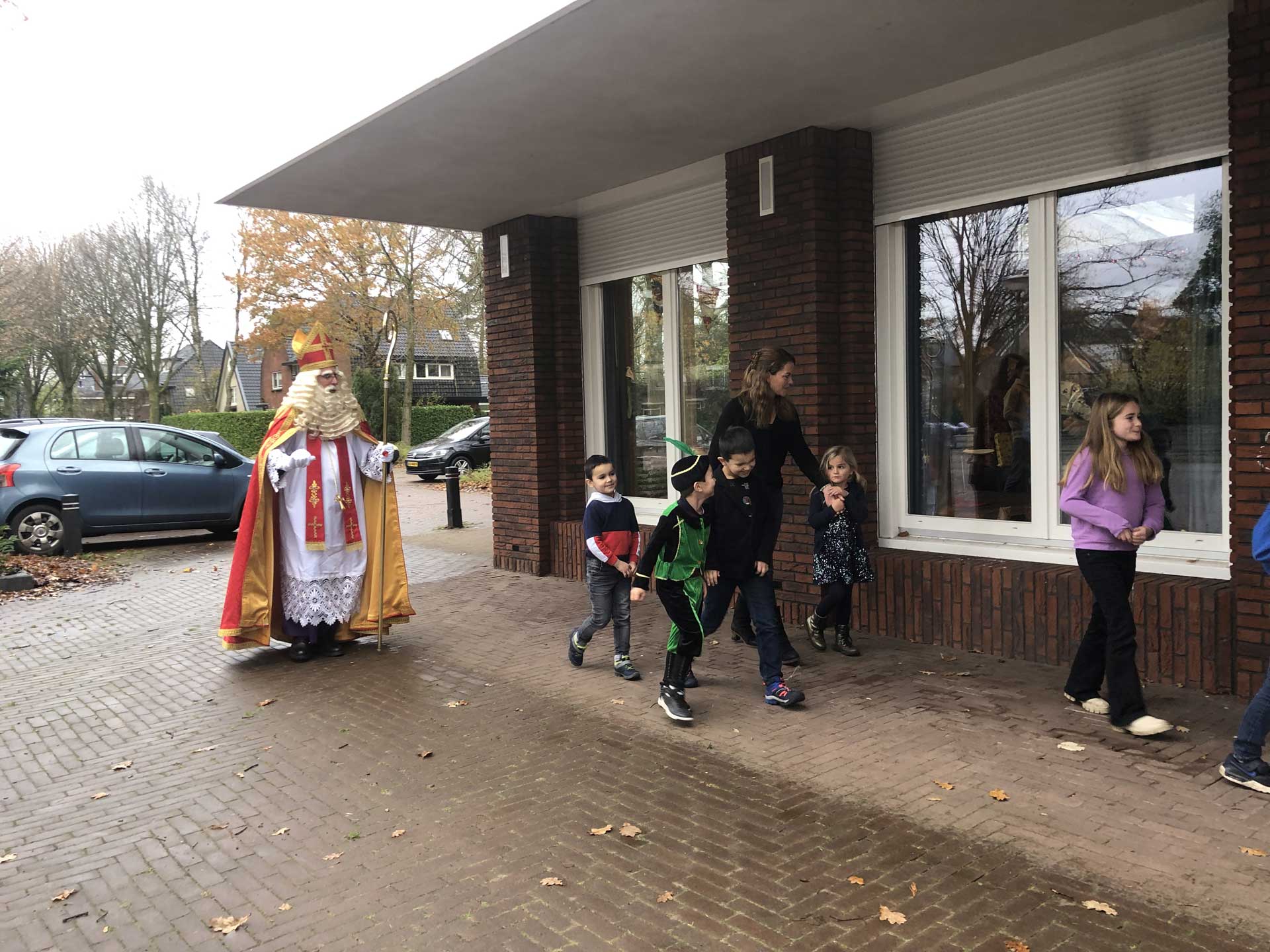 Al gauw snelden kinderen naar buiten om hem hartelijk te verwelkomen. Maar eerst mochten zij terug naar binnen, want daar moest gezongen worden. Als hoogtepunt mochten de kinderen de surprises uitpakken die voor hen in de schoentjes waren gestopt.