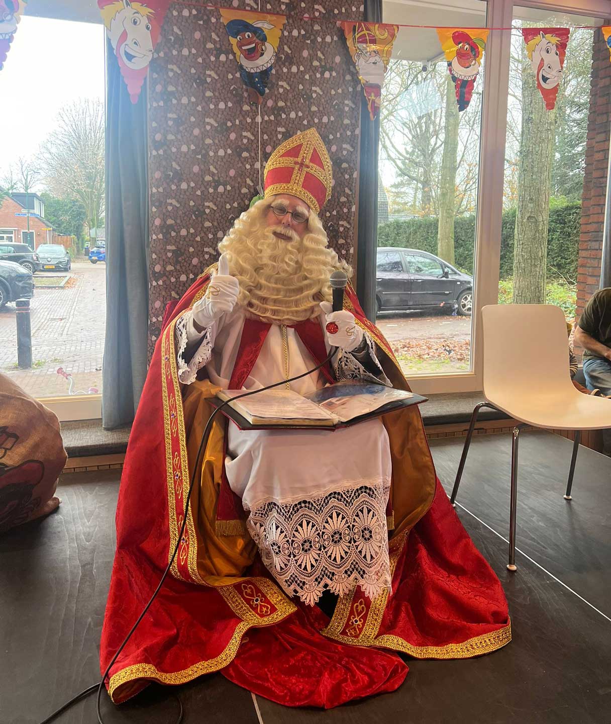 Op zondag 26 november was Sinterklaas naar Hollandsche Rading gekomen. Zijn paard had hij even niet bij zich, de Sint vond het lekker om een wandeling door het dorp te maken. Rustig wandelend met zijn twee kleine Pieten verscheen hij bij een vol Dorpshuis.