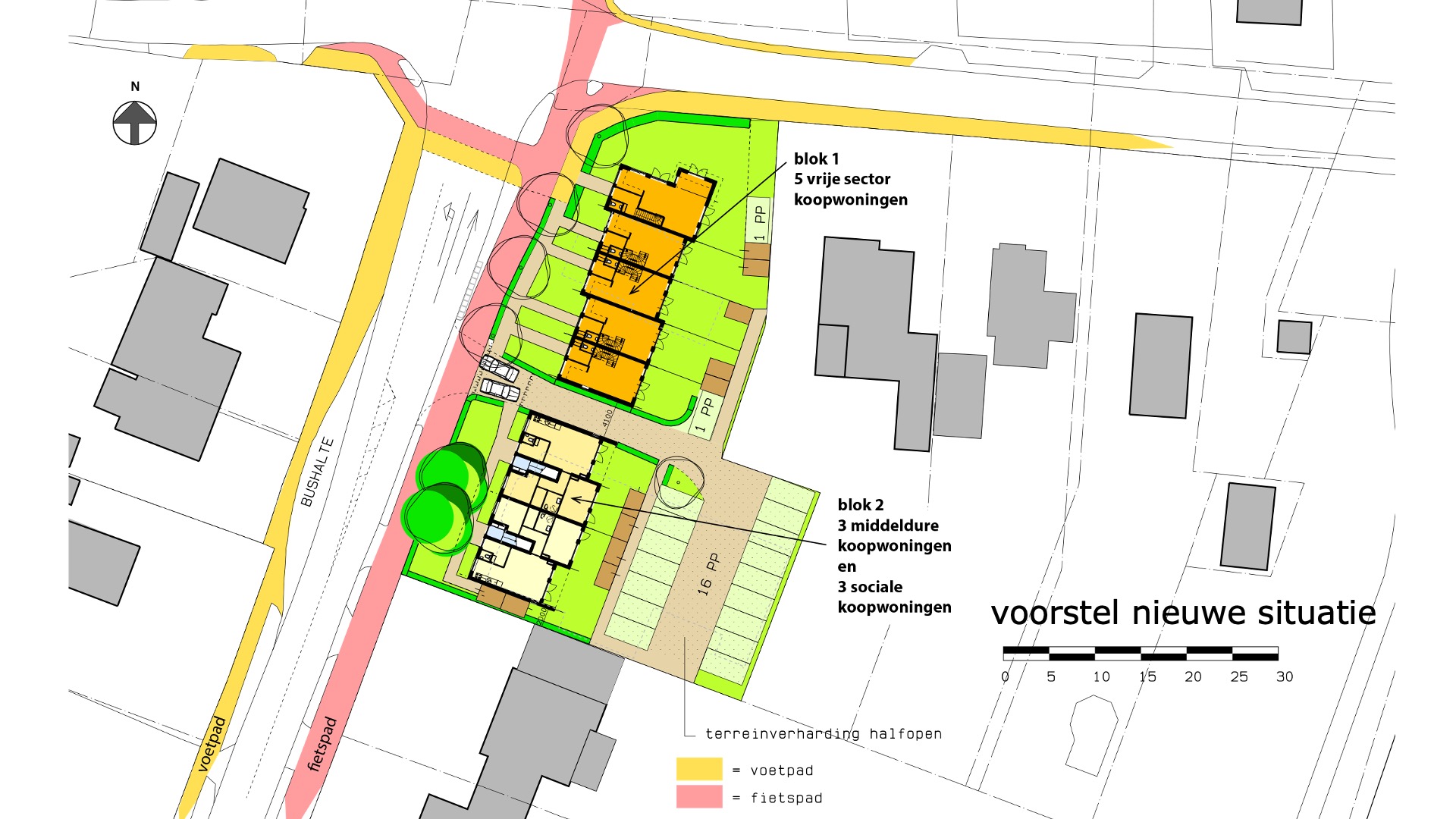 Ton Bons en Jeroen Baas van Architectenbureau MD2A gaven een toelichting op  de plannen voor 11 nieuwe koopwoningen voor starters, senioren en gezinnen. Op de hoek met de Vuursche Dreef komt een blok van vijf eengezinswoningen en daarnaast komt een blok met zes appartementen. Het geheel wordt gerealiseerd in houtbouw, dat is duurzaam en de woningen worden energieneutraal. Achter het appartementenblok komt een (afgesloten) parkeerterrein. Aandacht is er ook voor het voetpad op de hoek. Dit zal vanaf de Vuursche Dreef kort worden doorgetrokken naar de oversteekplaats. Achter de woningen komen bergingen en parkeerplaatsen op het eigen terrein, voor eigenaars en bezoek. Wat de woningen betreft wordt rekening gehouden met de wet- en regelgeving en een uiterlijk dat past bij het straatbeeld. Het voetpad op de Vuursche Dreef zal kort doorlopen om de hoek op de Tolakkerweg. Kortom: het begin van de Tolakkerweg gaat er fraaier uitzien en een aantal woningzoekenden wordt geholpen aan nieuwe woonruimte.