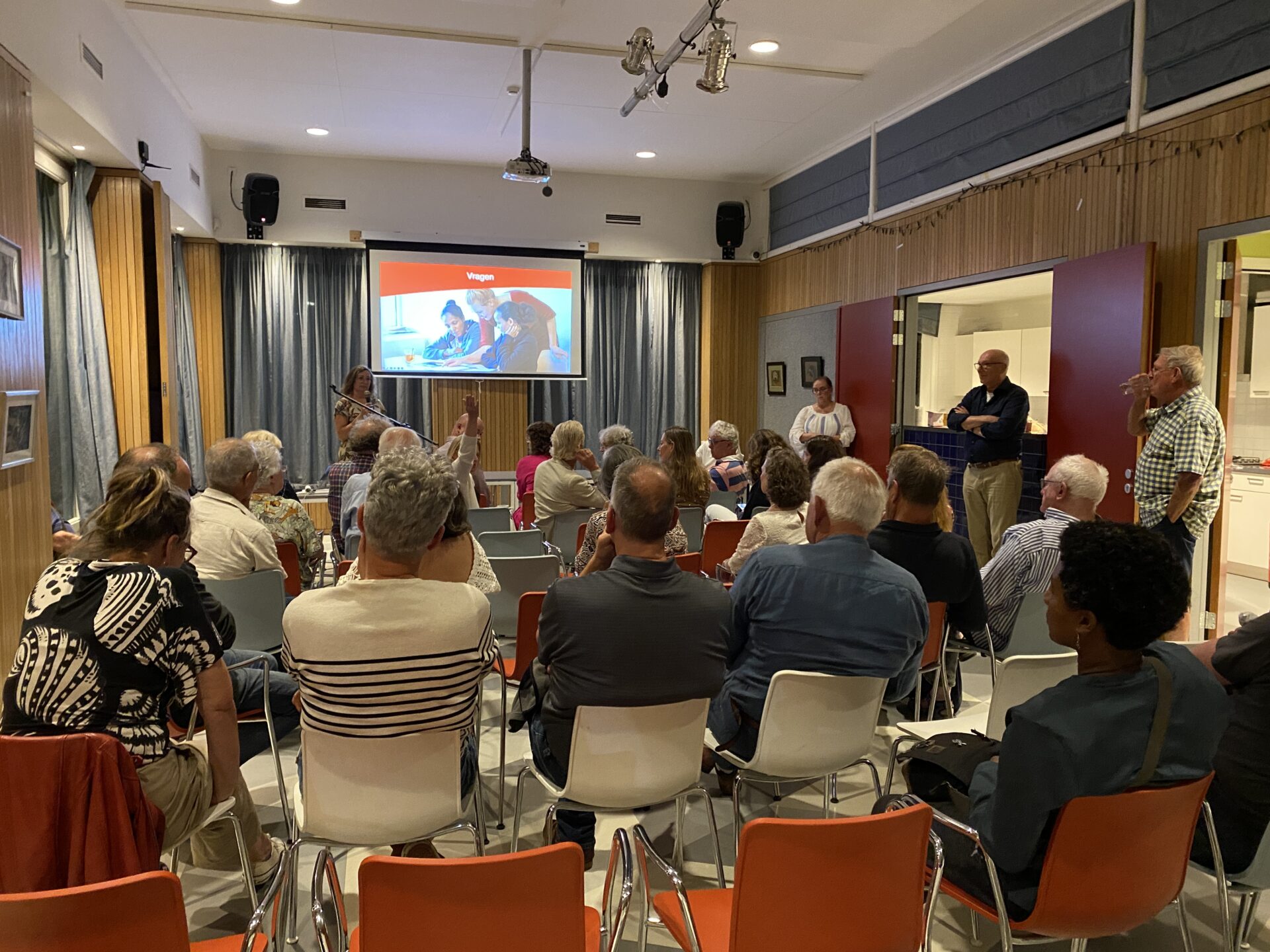 Op deze avond in het zeer goed bezette dorpshuis kwamen twee grotere onderwerpen aan de orde: het woningbouwproject De Maartenshof op de Tolakkerweg en de werkzaamheden van VluchtelingenWerk