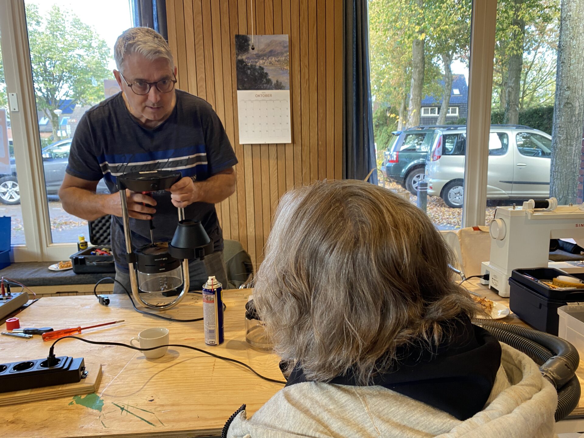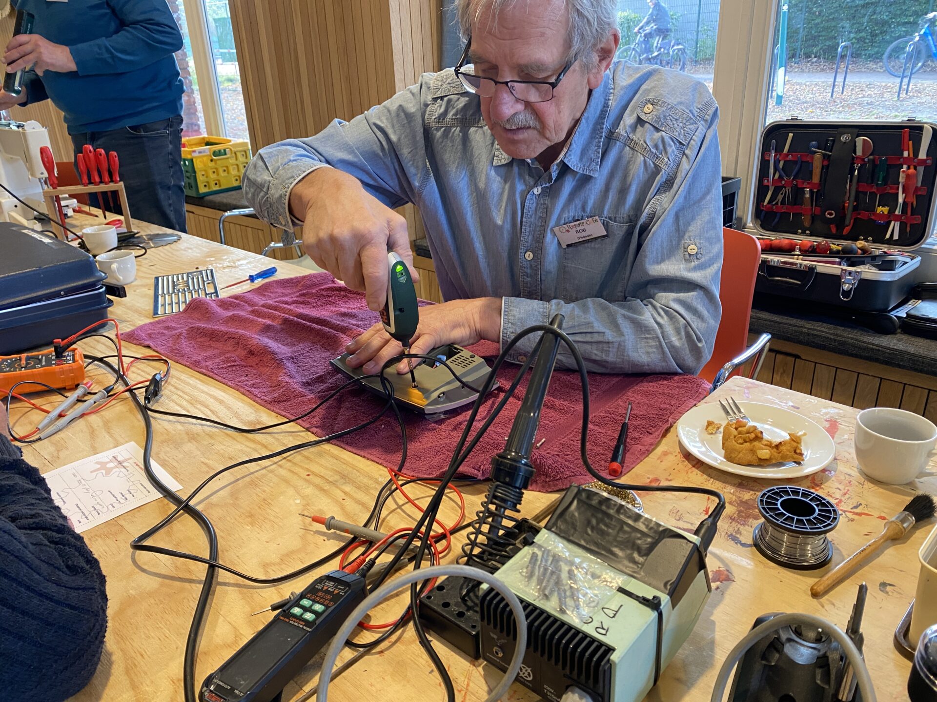De week van de duurzaamheid was al voorbij maar dat was geen belemmering voor het Repair Café in Hollandsche Rading op 18 oktober, duurzaamheid beperkt zich niet tot één week. Af en aan druppelden er die ochtend bewoners binnen met spulletjes die aan reparatie toe waren.